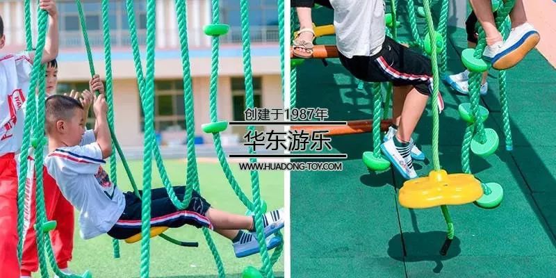 人猿泰山式藤條攀爬,蜘蛛俠式的來(lái)回穿梭于整個(gè)叢林是每個(gè)孩子童年的夢(mèng)想,由于考慮孩子的自身體力,小朋友的安全保護意識,我們在爬繩上增加了圓盤(pán),讓小朋友在攀爬的過(guò)程中可以有很好的抓力以及在攀爬過(guò)程中可以得到適當的休息。