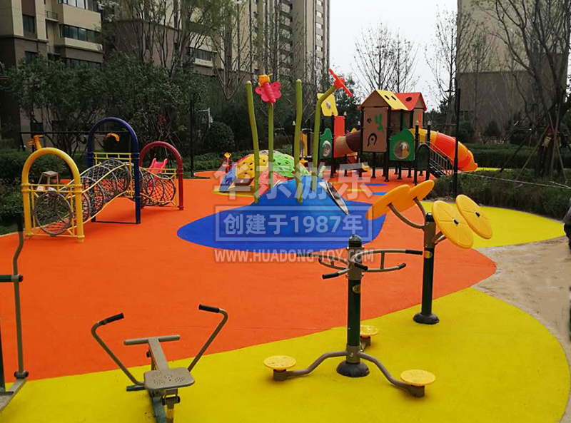 山西大同房地產(chǎn)案例 采用的是場(chǎng)地綜合設計,選用了華東多類(lèi)型的游樂(lè )設備(健身器材、秋千組合、組合滑梯、爬網(wǎng)等),豐富了小孩子的游玩環(huán)境和休閑場(chǎng)地。