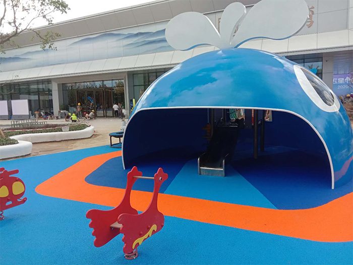 廣西賀州碧桂園項目是一個(gè)以鯨魚(yú)為原型而設計的游樂(lè )設備項目,整個(gè)項目充滿(mǎn)了海洋氣息,設置了蹺蹺板、搖搖樂(lè )、滑梯、爬網(wǎng)等游樂(lè )設備。