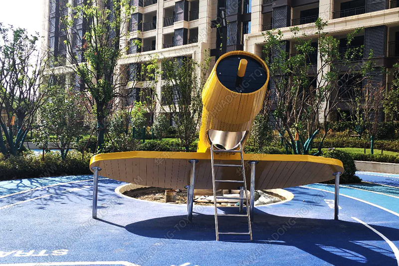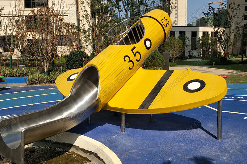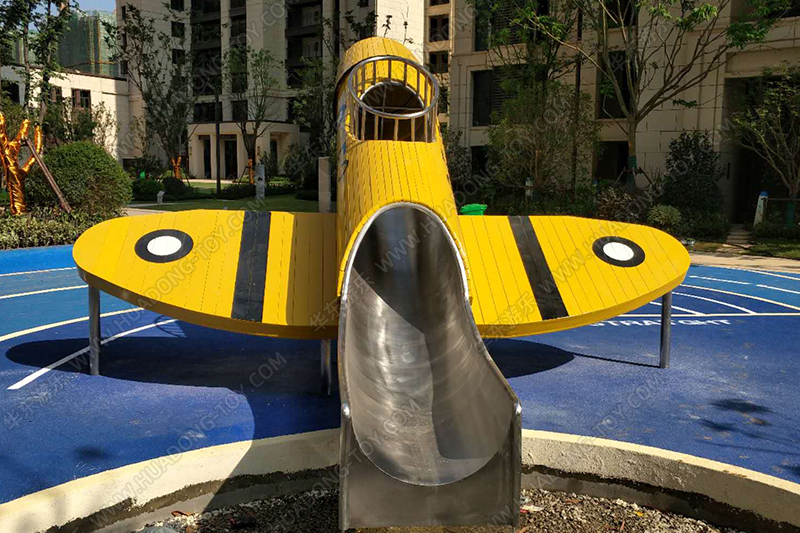 該項目采用的是以復古式的戰斗機為設計主題,整個(gè)設計了爬梯、不銹鋼滑梯、沙池、搖搖馬等游樂(lè )設備,給小朋友帶來(lái)了很好的游樂(lè )環(huán)境。