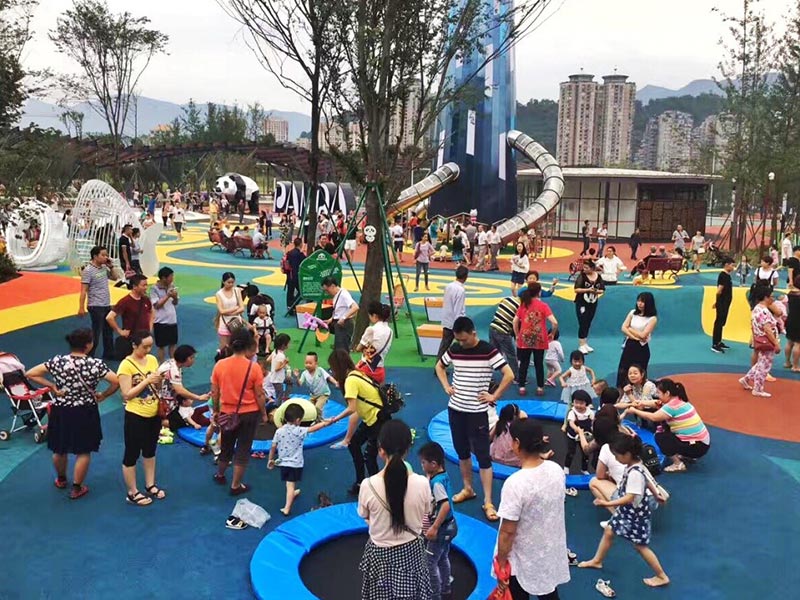 橫向空間是固定的,但是我們可以充分利用縱向空間。一方面,可以通過(guò)建立小土坡的形式來(lái)利用縱向空間。這樣既節約了搭構框架的成本,同時(shí),也能讓有效的空間得到合理的利用;另一方面,我們可以采取盆地式的構建方式,這樣斜坡的位置可以用來(lái)擺放滑梯、攀爬架、攀巖墻等游樂(lè )設備,而盆地底部則可以放置沙池、蹦床、秋千等等。