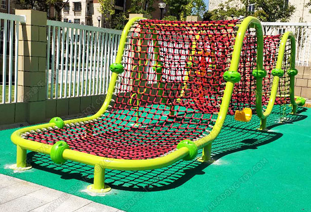 攀爬類(lèi)的繩網(wǎng)設備可以激發(fā)孩子的探索興趣、培養他們面對困難時(shí)應有的勇氣、以及對他們的體力耐力產(chǎn)生良好的鍛煉效果和積極影響?,F在很多戶(hù)外樂(lè )園采用繩網(wǎng)設備作為主體游樂(lè )設備的相當多,其外形有很大的延展性,對孩子們極易形成足夠的吸引力,忍不住想去攀爬游戲。