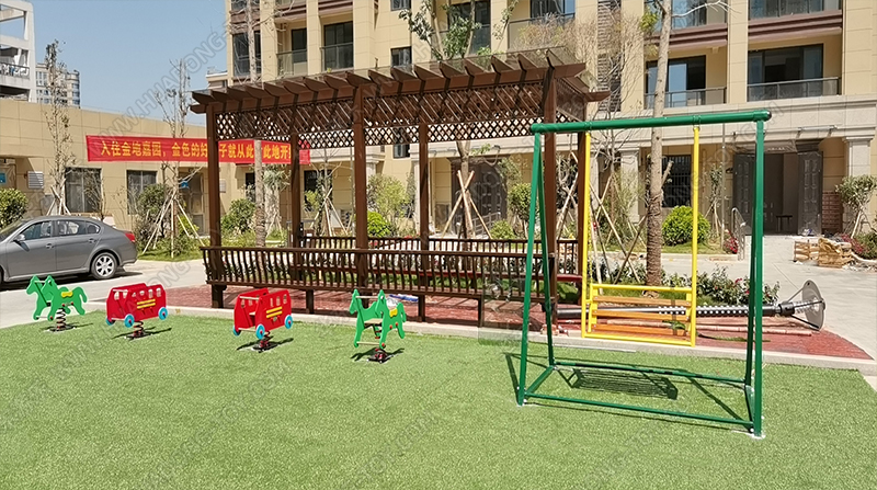碧桂園金地嘉園項目是國內大型房地產(chǎn)項目,整個(gè)項目采用以環(huán)保的綠色為主,主體游樂(lè )設備采用綠色的森林系列大型滑梯組合,新增了搖搖樂(lè ),健身器材,萬(wàn)能秋千組合等游樂(lè )設備,不僅僅豐富了小區的休閑娛樂(lè ),也為小朋友玩耍提供了場(chǎng)所。