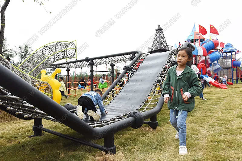 跨國夢(mèng)想歡樂(lè )島是華東游樂(lè )自主研發(fā)的一款大型滑梯組合,是集合了攀、爬、鉆、滑等多種功能,設置了爬網(wǎng)、鉆洞、滑梯、攀爬墻、平衡橋等游樂(lè )設備,小朋友可以在歡樂(lè )島上面像小松鼠一樣自由的玩耍,盡情的游戲。