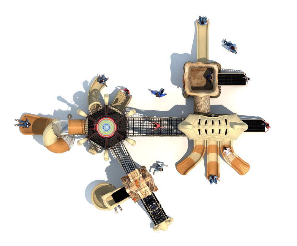 • 遠古部落系列雖然名字帶著(zhù)“古”字,但是在設計細節處無(wú)不透露著(zhù)藝術(shù)與創(chuàng )造性。當孩子在仿真樹(shù)中探索、冒險、嬉戲游玩時(shí),就像穿越到古老的神秘森林;粗略的樹(shù)干包圍著(zhù)他們,頭頂是高聳的茅草屋,觸感真實(shí)的枯枝走廊,還有隨處可見(jiàn)的小動(dòng)物們…… 遠古部落系列旨在打造區別于其他系列帶給孩子們的新鮮感,讓孩子們找設計者打造的神秘世界中獲得冒險的樂(lè )趣。