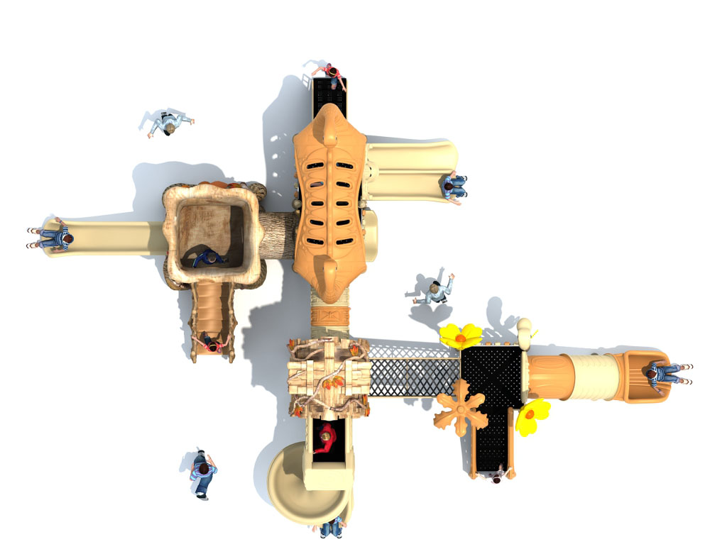 • 遠古部落系列雖然名字帶著(zhù)“古”字,但是在設計細節處無(wú)不透露著(zhù)藝術(shù)與創(chuàng )造性。當孩子在仿真樹(shù)中探索、冒險、嬉戲游玩時(shí),就像穿越到古老的神秘森林;粗略的樹(shù)干包圍著(zhù)他們,頭頂是高聳的茅草屋,觸感真實(shí)的枯枝走廊,還有隨處可見(jiàn)的小動(dòng)物們…… 遠古部落系列旨在打造區別于其他系列帶給孩子們的新鮮感,讓孩子們找設計者打造的神秘世界中獲得冒險的樂(lè )趣。