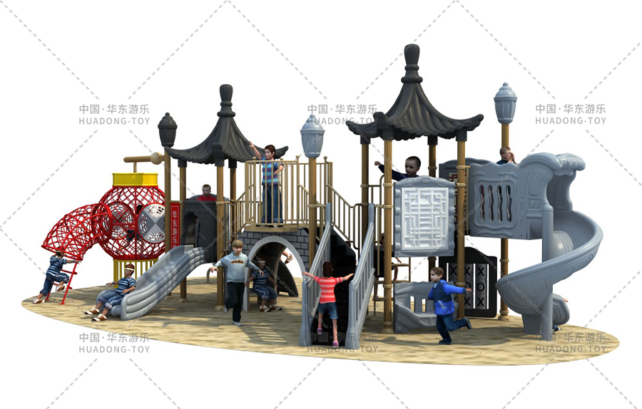 中國風(fēng)系列來(lái)之我們研發(fā)部開(kāi)發(fā)一種中國特色一中國元素——-中國趣味。中國風(fēng)系列以蘇州園林與徽派建筑為靈感,溶入現代建筑簡(jiǎn)潔、大方,明快與實(shí)用的風(fēng)格,利用青磚黛瓦的微派建筑,景象別致的蘇州園林,馬頭墻小青瓦亭臺樓閣,高低錯落,變化無(wú)窮。結合攀、爬、滑、鉆、蕩等功能,為孩子打造一個(gè)奇妙的游樂(lè )世界。孩子們穿梭其中,感受不一樣的體驗,積極培養孩子對中國傳統文化的熱愛(ài),弘揚中國傳統與親身體驗。