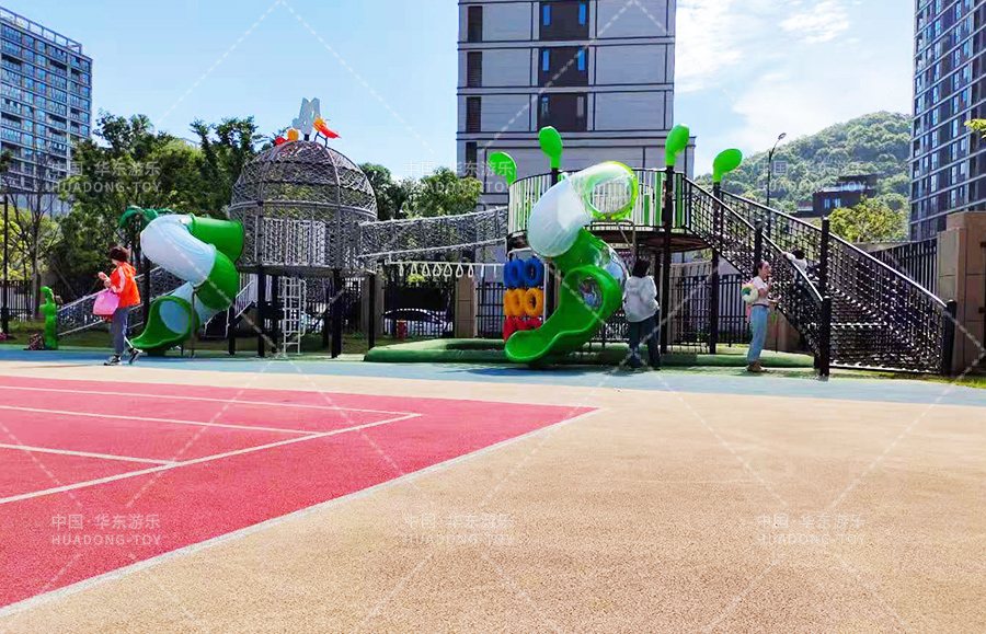 舟山市畚斗岙幼兒園此次選用的是又華東游樂(lè )自主研發(fā)和設計的網(wǎng)繩系列戶(hù)外滑梯組合,具備了爬網(wǎng)、鉆洞、滑梯、滑桶、吊環(huán)、攀爬梯、沙池等游樂(lè )設備,能夠讓小朋友在玩耍中得到很好的鍛煉和學(xué)習。