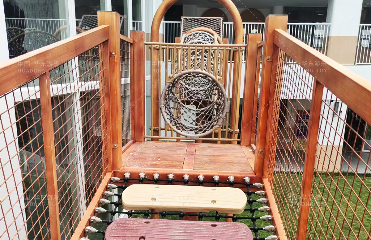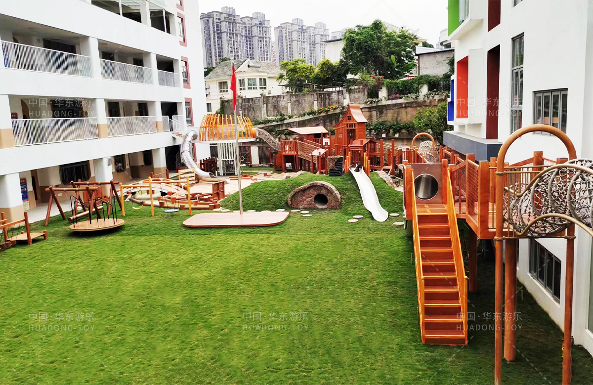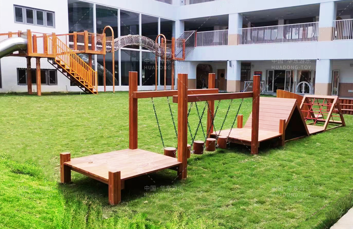 高峰幼兒園是一個(gè)專(zhuān)業(yè)的學(xué)前教育培訓機構,此次選用的是華東游樂(lè )設計和生產(chǎn)的木制非標定制的游樂(lè )設備,設計了具有攀爬網(wǎng)、鉆洞、秋千、木制拓展、木制小屋、不銹鋼滑梯等功能的游樂(lè )設備,豐富的功能、優(yōu)質(zhì)的設備、讓整個(gè)校園充滿(mǎn)了生機與活力。