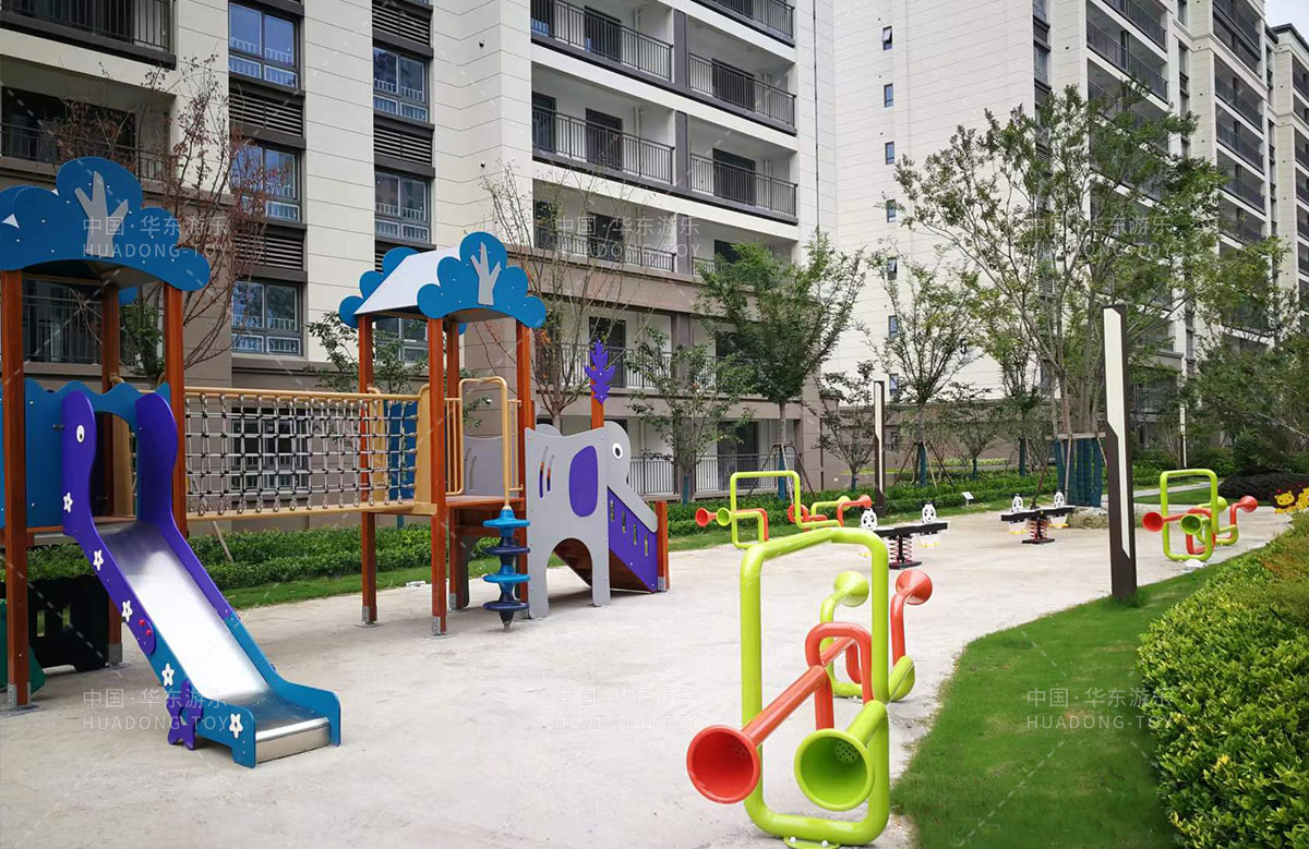 該項目選用的是華東游樂(lè )自主設計和研發(fā)的 PE板與木質(zhì)相結合而設計的游樂(lè )設備,具有主題性強、使用壽命長(cháng)等特點(diǎn),并且該場(chǎng)地還添置了搖搖樂(lè ),傳聲筒、蹺蹺板、打擊樂(lè )器等游樂(lè )設備,為在這里玩耍的小朋友提供了一個(gè)休閑娛樂(lè )的場(chǎng)所。