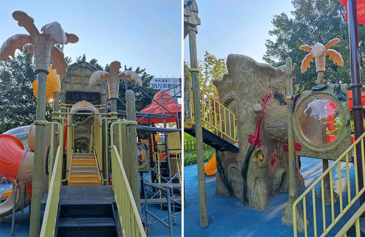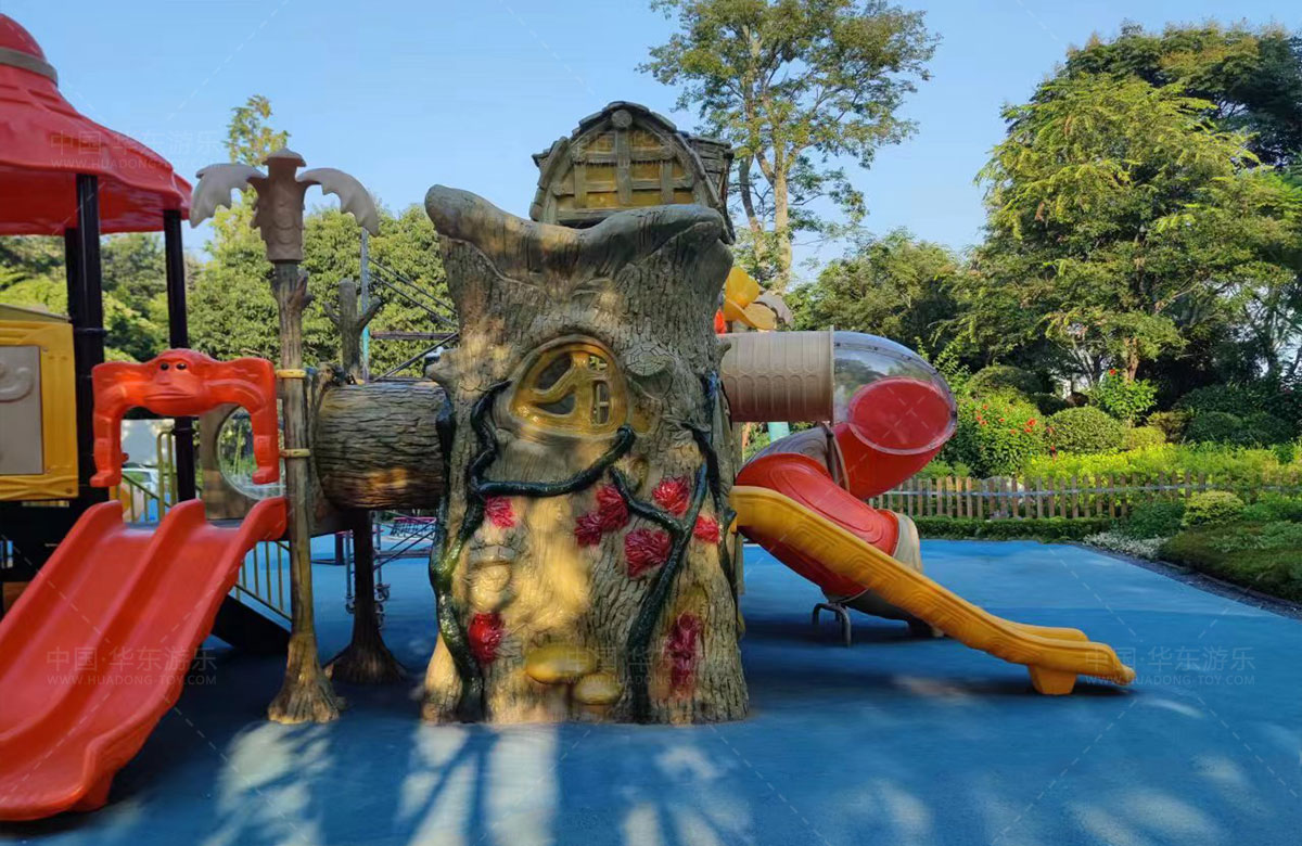 該項目選用的是遠古部落系列的組合滑梯,該滑梯是華東游樂(lè )自主研發(fā)和設計的具有功能齊全、玩法多樣、使用 壽命長(cháng)等特點(diǎn)的游樂(lè )設備。