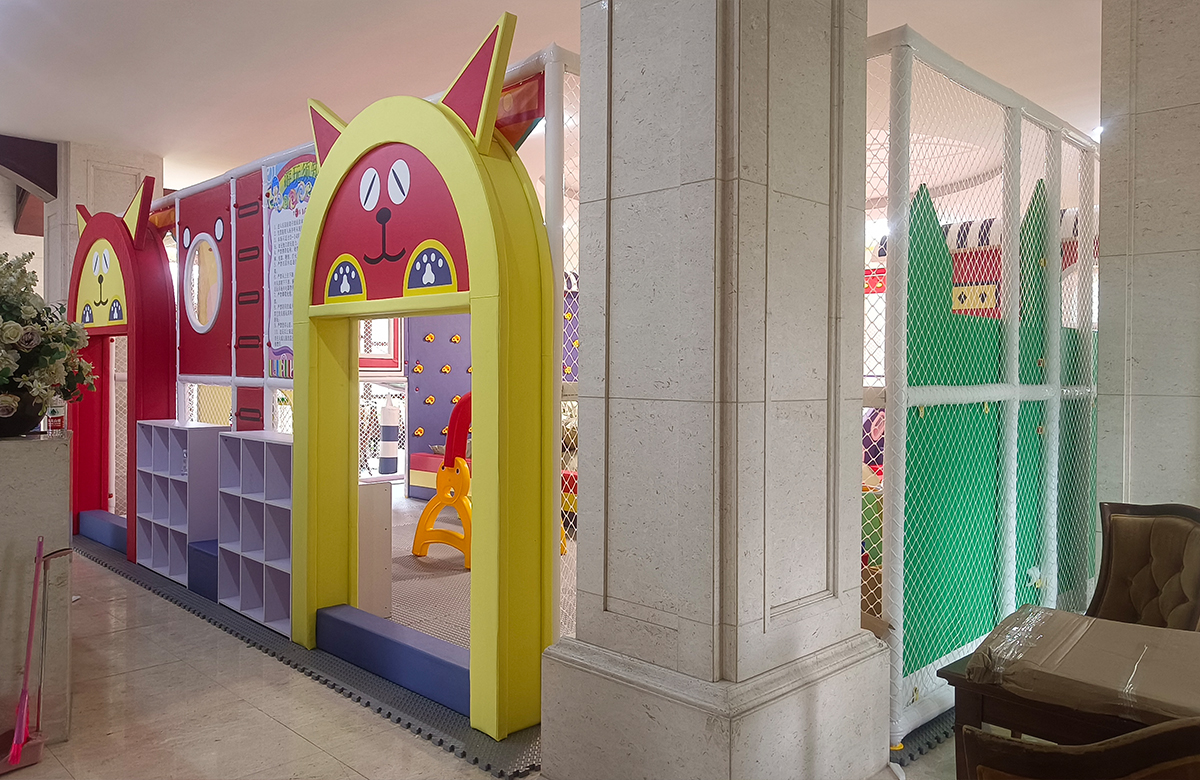 為了更好的讓孩子們有一個(gè)玩耍的場(chǎng)所,該項目選用了海洋球、攀爬墻、旱雪滑梯、兒童秋千、兒童蹦床、游戲迷宮等功能為一體的室內淘氣堡兒童樂(lè )園,為小朋友的健康發(fā)展提供了保障。