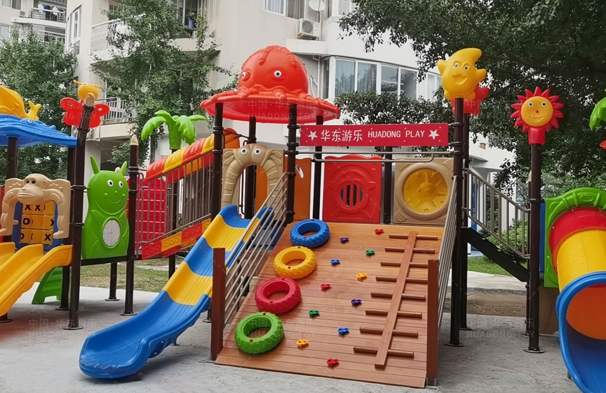 該小區選用的是華東游樂(lè )自主研發(fā)和設計的大自然系列組合滑梯,是一款具備了攀爬網(wǎng)、攀爬梯、直行滑梯、滑筒等功能為一體的綜合性游樂(lè )設備,能夠很好的為小朋友提供休閑娛樂(lè )的場(chǎng)所。