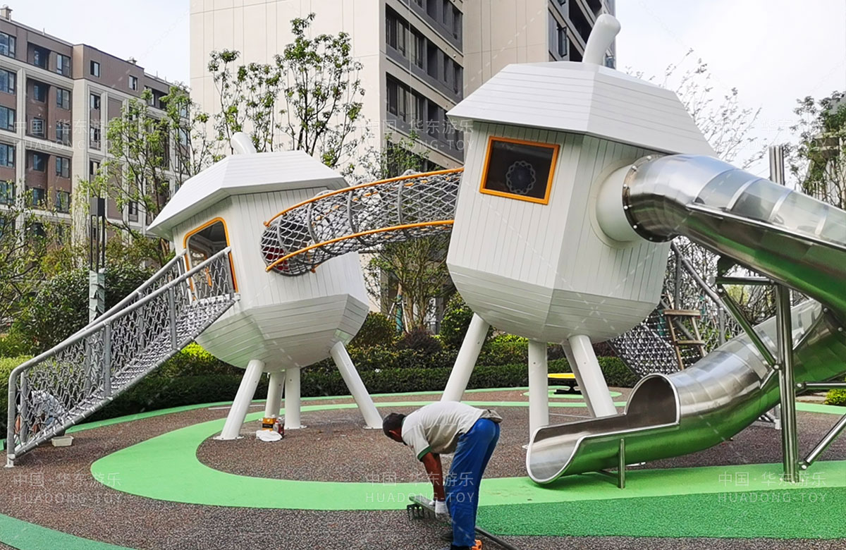 安徽省融創(chuàng )濱湖灣選用的是華東游樂(lè )自主研發(fā)和生產(chǎn)的松果樂(lè )園系列主題非標定制的游樂(lè )設備,該設備具備了攀爬網(wǎng)、空中網(wǎng)橋、大型不銹鋼滑筒等功能,同時(shí)還設置了能激發(fā)孩子們想象力和促進(jìn)大小腦發(fā)育的翻翻樂(lè )和涂鴉墻,讓孩子們在這里盡情的玩耍。