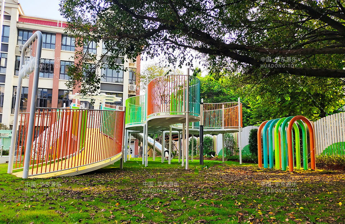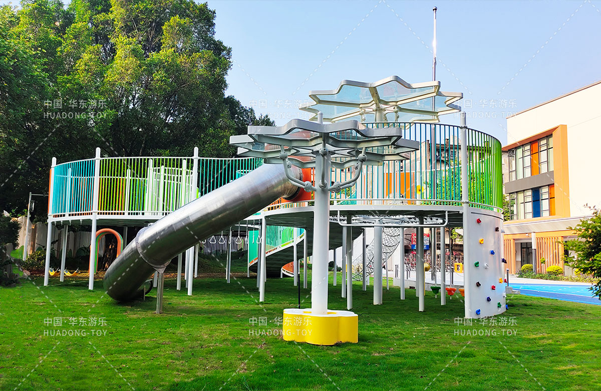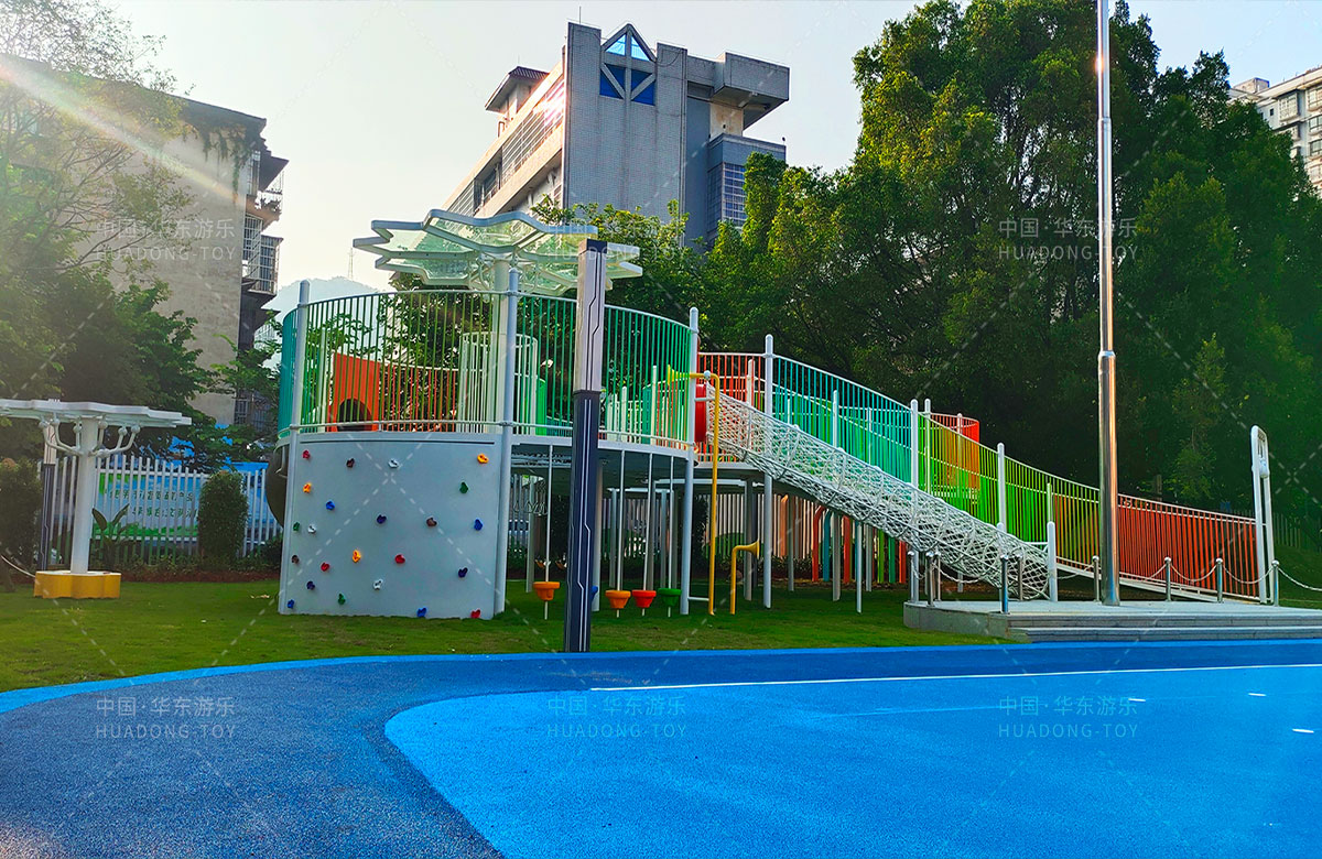 三明市實(shí)驗幼兒園 選用的是華東游樂(lè )自主研發(fā)和設計的非標定制系列的組合游樂(lè )設備,是一款具備了攀爬網(wǎng)、空中網(wǎng)橋、攀爬墻、兒童秋千、大型滑筒、平衡吊環(huán)、彩虹橋等功能,除此之外還設置了樹(shù)形休閑廳、木制小橋等游樂(lè )設備,讓孩子們有一個(gè)健康的成長(cháng)環(huán)境,也為老師的教學(xué)提供了保障。