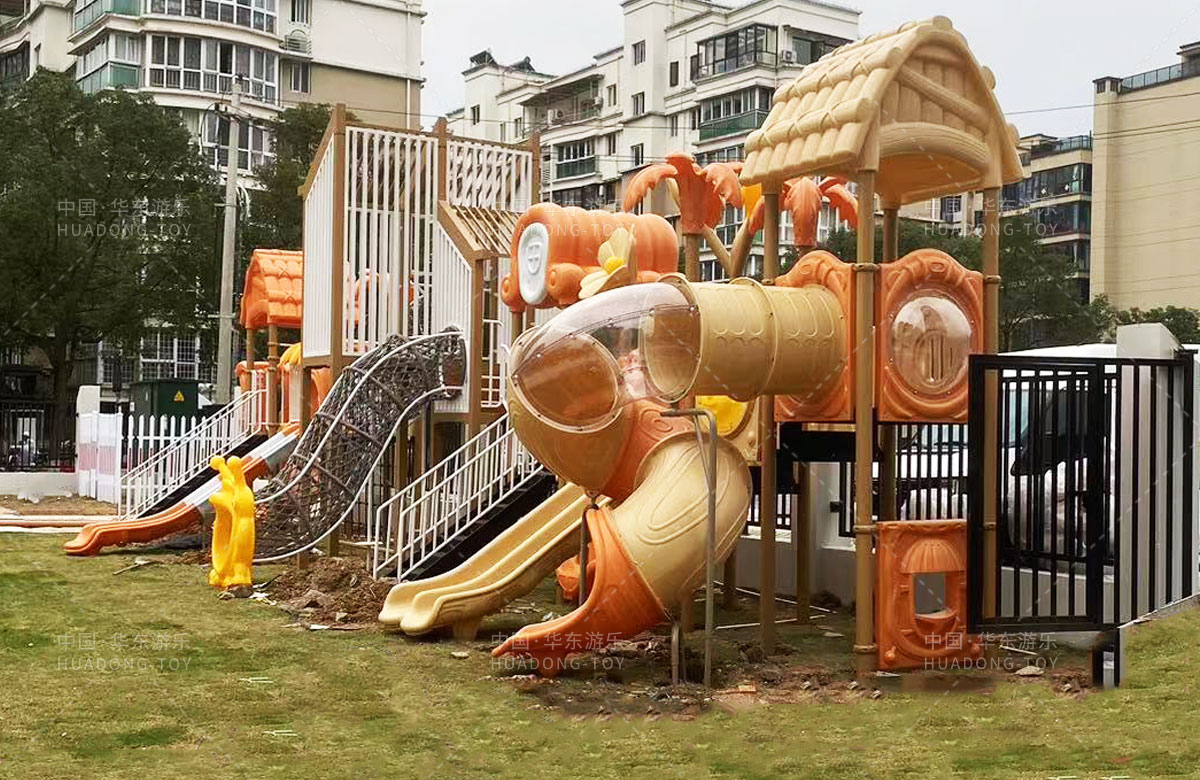 永嘉縣童真幼兒園是一家專(zhuān)業(yè)的學(xué)前培訓學(xué)校,此次選用的兒童游樂(lè )設備是華東游樂(lè )自主研發(fā)和設計的大型戶(hù)外組合滑梯,該滑梯是一款具備了攀爬網(wǎng)、大型滑筒、旋轉滑梯、直行走梯、雙人滑梯等功能為一體的綜合性游樂(lè )設備。