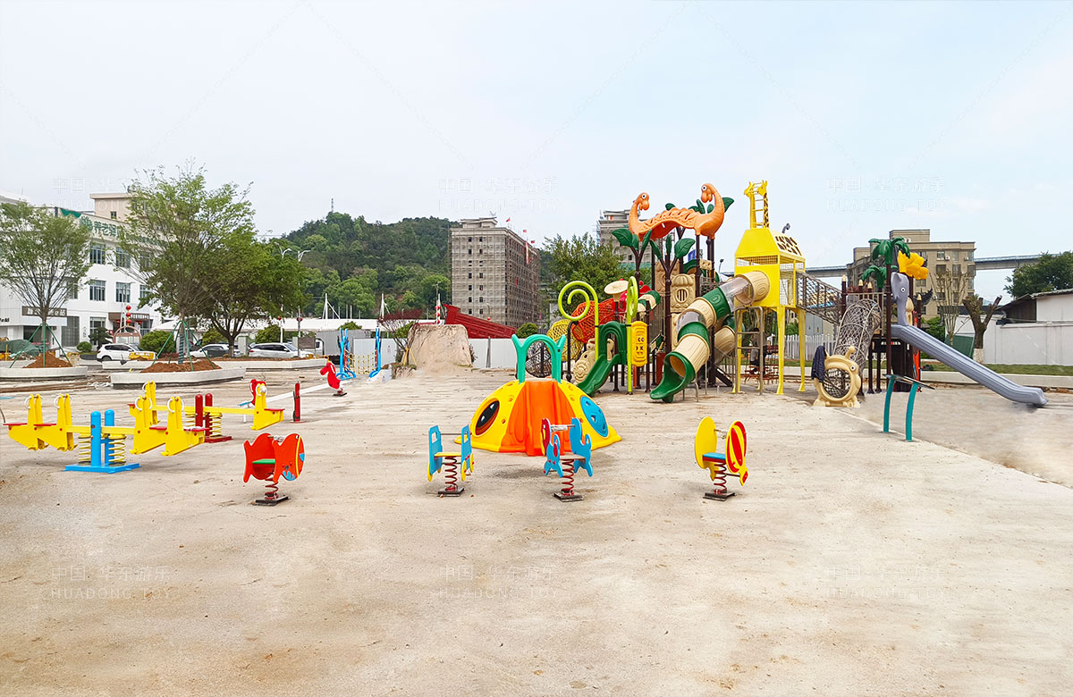 樂(lè )清市溪西工業(yè)園區休閑文化生態(tài)園是一個(gè)免費的文旅公園,主要為生活在這里的人群提供一個(gè)休閑、娛樂(lè )、遛娃、健身的場(chǎng)所,在該項目中選用的的華東有了自主研發(fā)和生產(chǎn)的動(dòng)物系列組合滑梯,該滑梯具有功能齊全、玩法多樣、顏色艷麗等特點(diǎn),除此之外還新增了兒童 搖搖樂(lè )、組合秋千、蹺蹺板、打擊樂(lè )器、腳踏旋轉座椅等游樂(lè )設備。