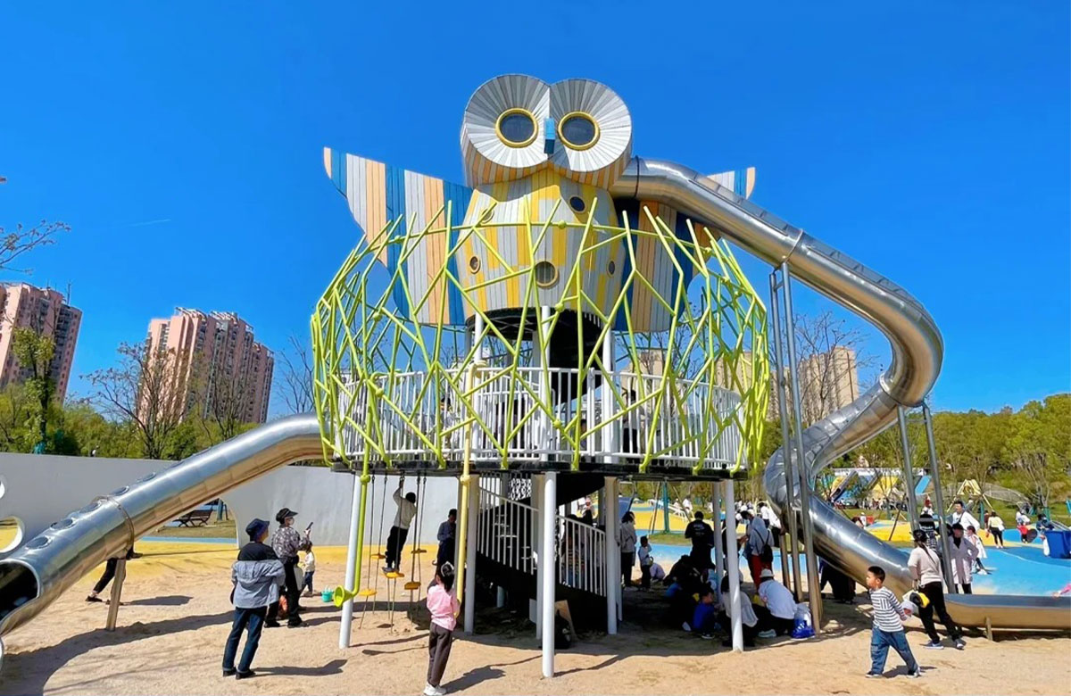 張畢湖公園定位為生態(tài)水體公園,是一個(gè)兼具濕地科普和放松休閑功能的城市綜合公園。 該項目選用的是華東游樂(lè )自主研發(fā)和設計的綜合性游樂(lè )設備,分別設置了貓頭鷹主題的組合滑梯,各種類(lèi)型的組合秋千、不銹鋼滑梯、攀爬繩等游樂(lè )設備。 公園內設有服務(wù)設施豐富的濱水活力區、景色優(yōu)美、植被茂盛的林下休憩區和供人們休閑嬉戲的水岸游憩區。