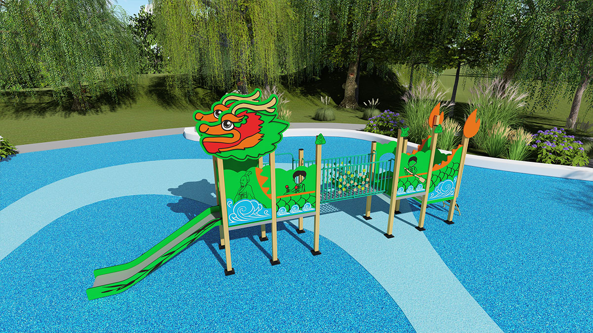 新品說(shuō)明:“龍舟樂(lè )園”是一款集趣味性與教育性于一體的兒童游樂(lè )設施。它巧妙地將龍舟文化融入設計中,不僅提供了攀爬網(wǎng)、滑梯、攀爬梯等經(jīng)典游樂(lè )元素,還創(chuàng )新地加入了翻翻樂(lè )和角色扮演功能。孩子們在玩耍的同時(shí),可以體驗龍舟競渡的激情 ,感受中國傳統文化的魅力。