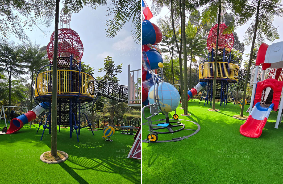該項目選用的是華東游樂(lè )自主研發(fā)和設計的跨國系列組合滑梯,該滑梯具備了攀爬網(wǎng)、鉆洞、滑梯等功能,同時(shí)為了讓整個(gè)游樂(lè )場(chǎng)變得更加具有生機與活力,整個(gè)項目還設置了小朋友喜歡的兒童搖搖樂(lè )、兒童蹺蹺板、以及地球旋轉自行車(chē)等游樂(lè )設備,為當地的人群體提供了一個(gè)休閑娛樂(lè )的場(chǎng)所。