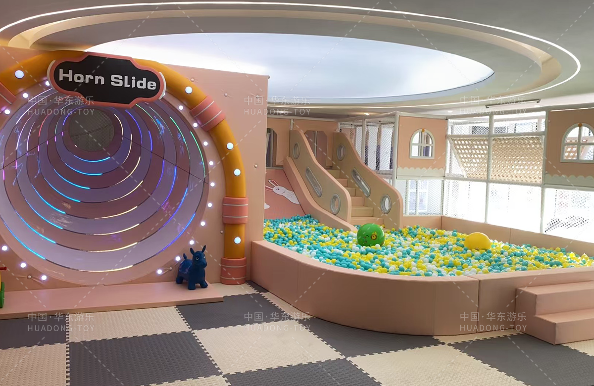 為了更好的讓孩子們有一個(gè)更好的玩耍場(chǎng)地,整個(gè)幼兒園選擇了華東游樂(lè )自主研發(fā)和設計的室內兒童游樂(lè )園,在這里孩子們可以在歡樂(lè )的海洋球里盡情的玩耍,也可以在蹦床上盡情的彈跳,更是為老師的教學(xué)提供了一個(gè)很好的幫助。