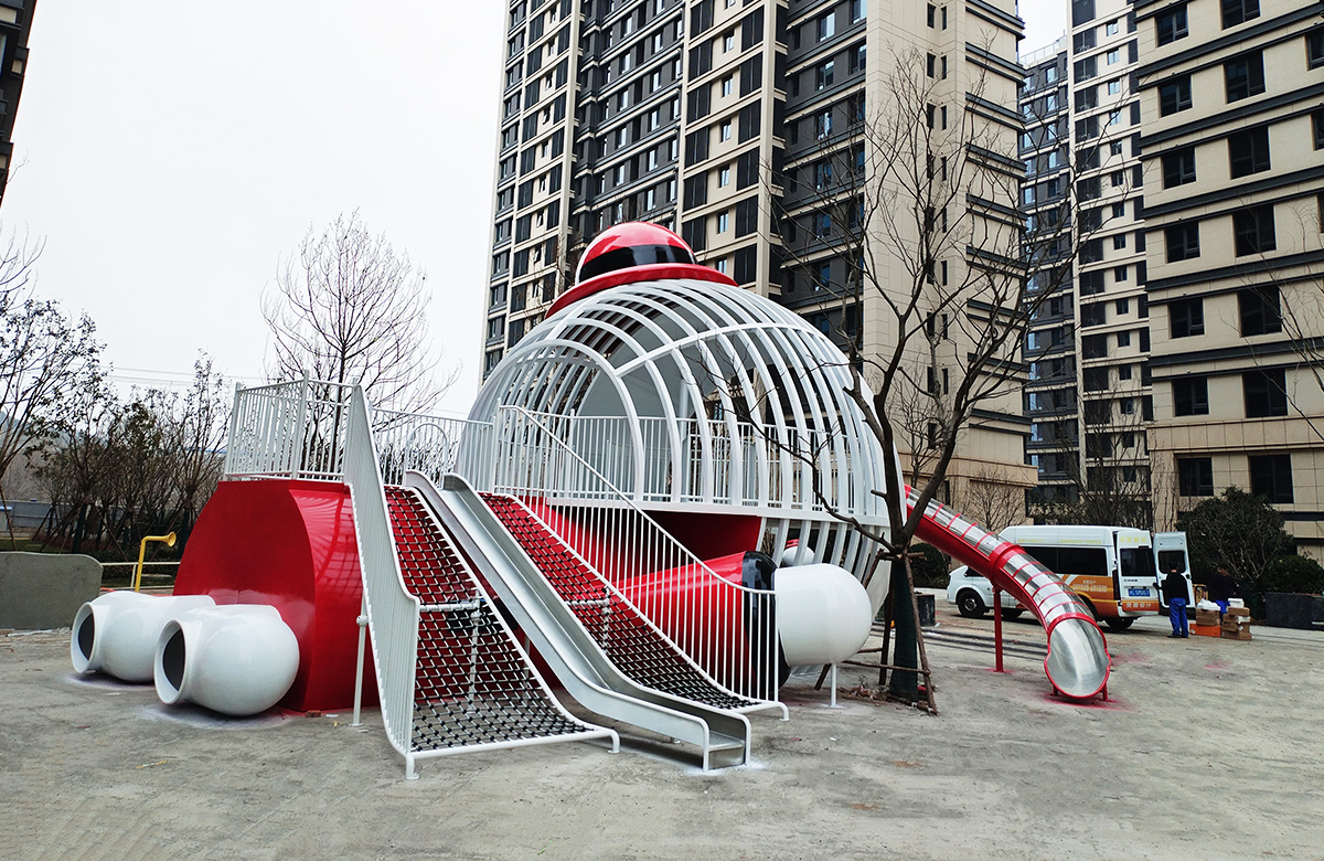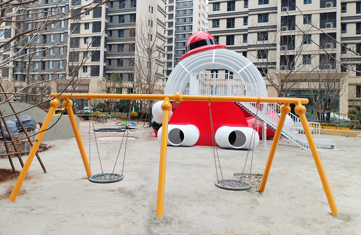 山東省銀豐玖璽城崇和院選用的是銀豐地產(chǎn)旗下的IP主題人物 銀小豐 為主題設計的主題性游樂(lè )設備,該設備具備了攀爬網(wǎng)、不銹鋼滑梯、鉆洞等功能,同時(shí)為了更好的為生活在小區的人們提供方便和服務(wù),我們還設置了組合秋千、蹺蹺板、搖搖樂(lè )地蹦床等游樂(lè )設備,讓整個(gè)小區的生活變得更加的充滿(mǎn)生機與活力。